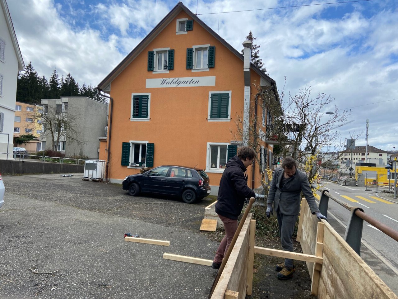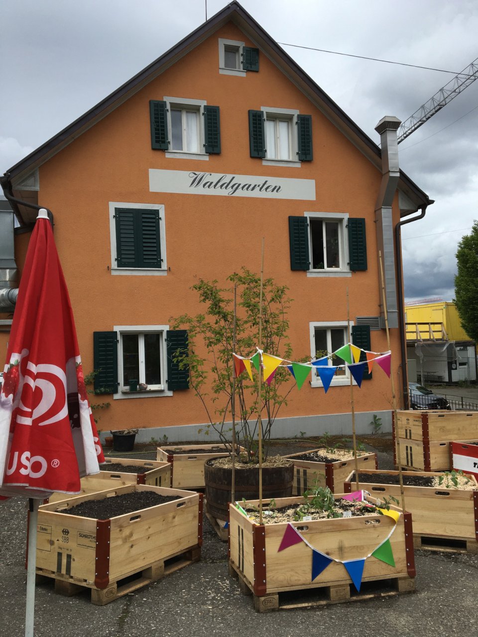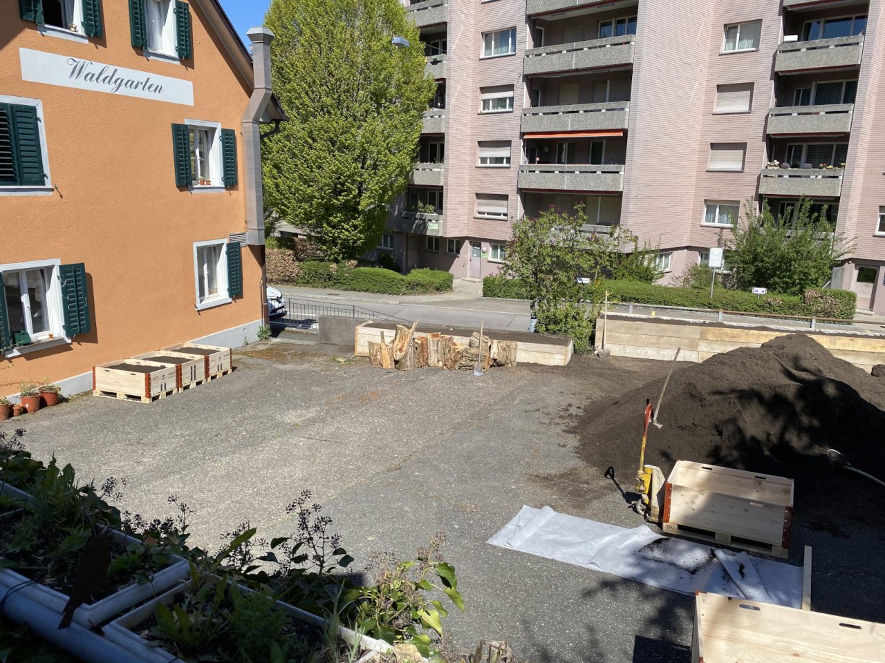 Auf dem Parkplatz des ehemaligen Restaurants Waldgarten, möchten wir einen Begegnungsort schaffen, welcher der Quartierbevölkerung das urbane Gärtnern ermöglicht und dazu beiträgt das Quartierbild zu verschönern.
