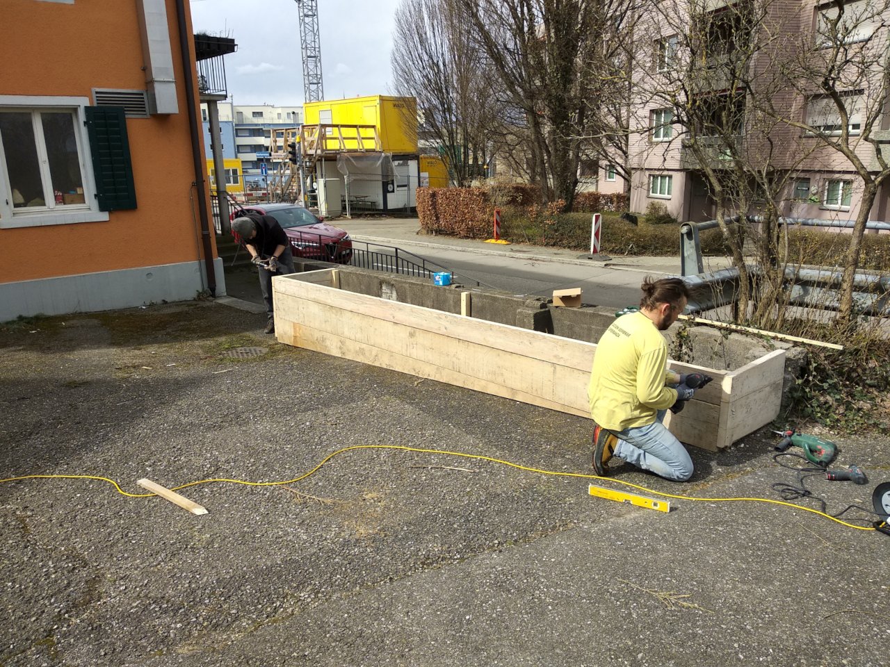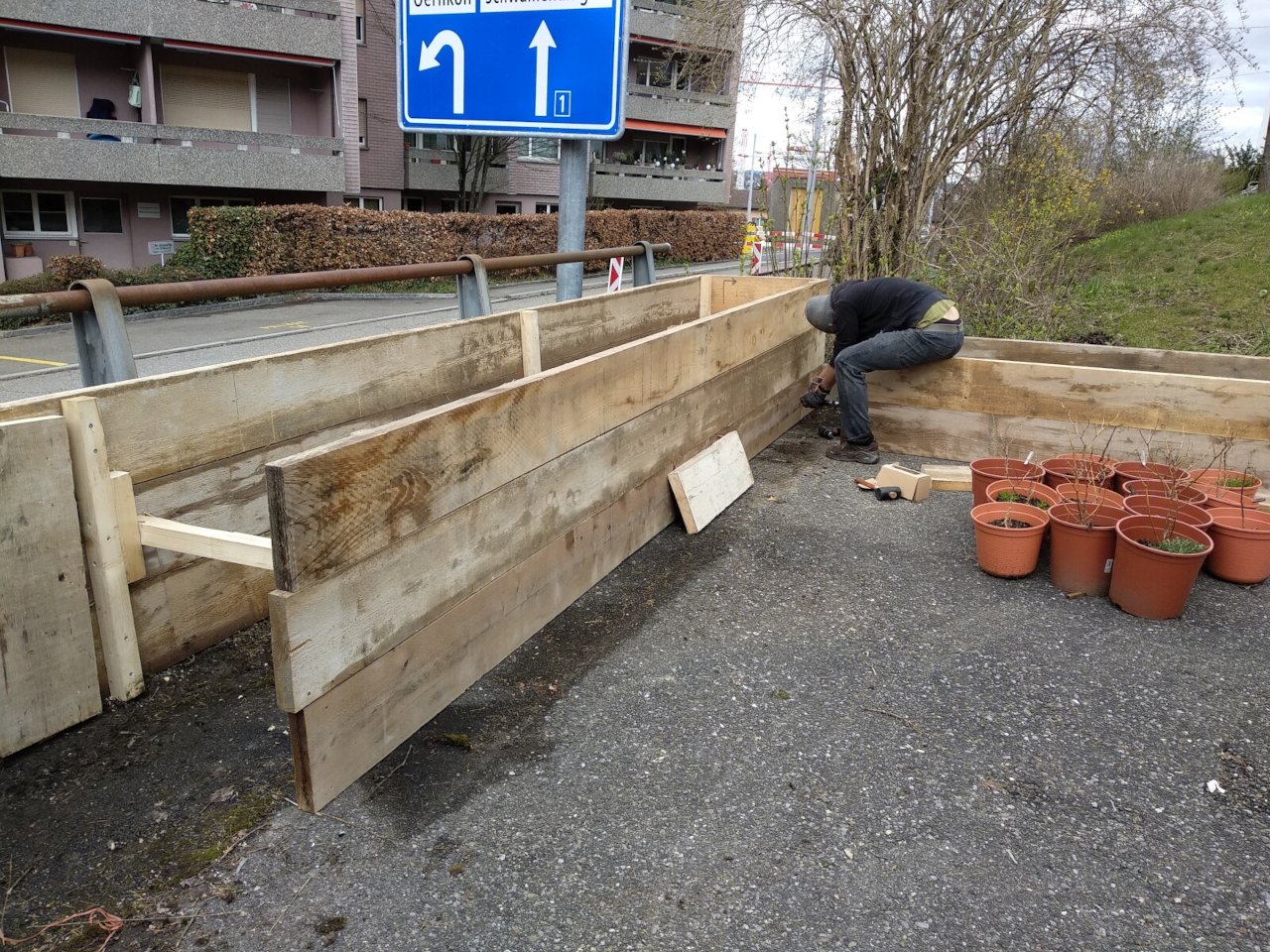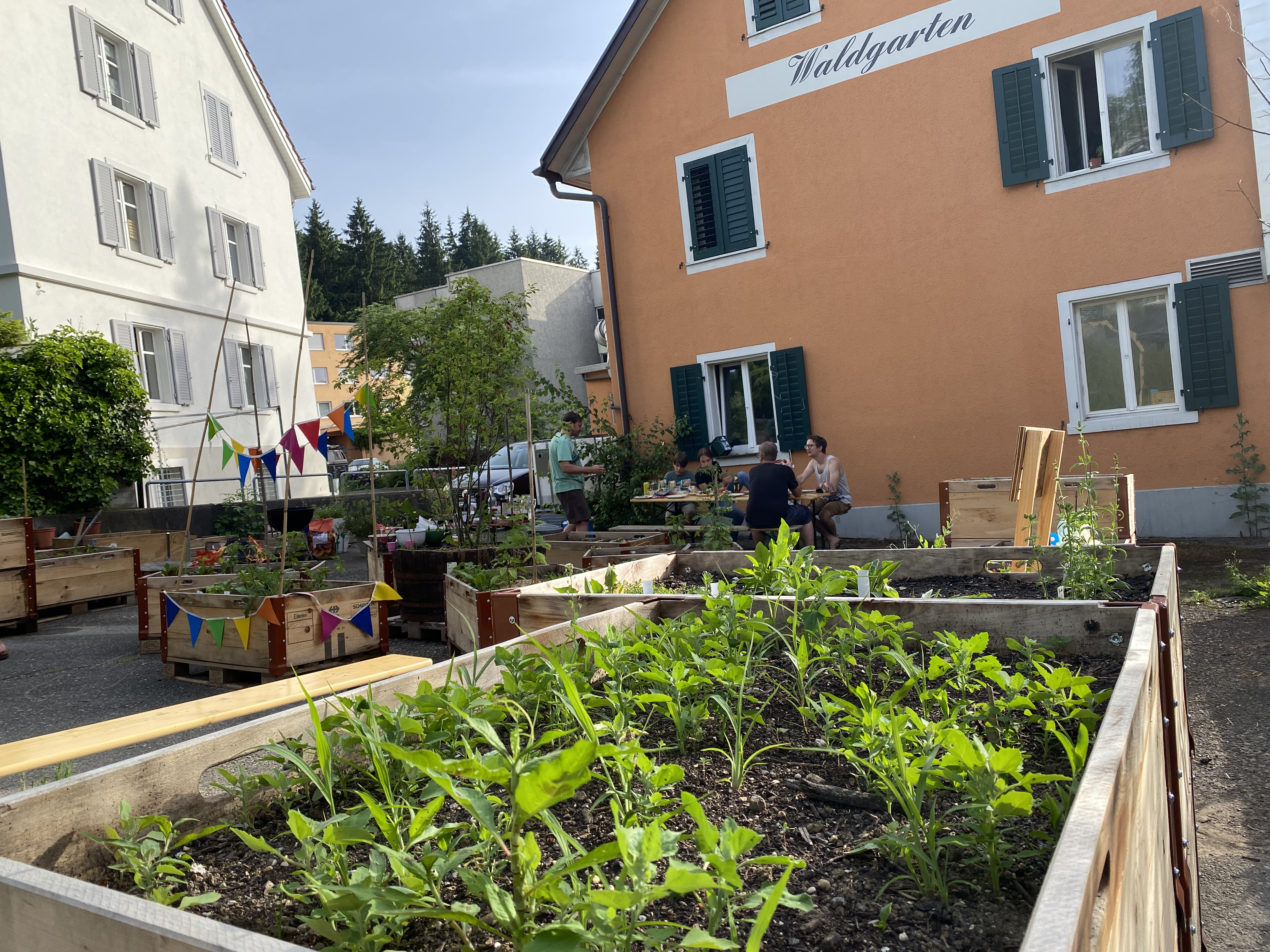 Auf dem Parkplatz des ehemaligen Restaurants Waldgarten, möchten wir einen Begegnungsort schaffen, welcher der Quartierbevölkerung das urbane Gärtnern ermöglicht und dazu beiträgt das Quartierbild zu verschönern.