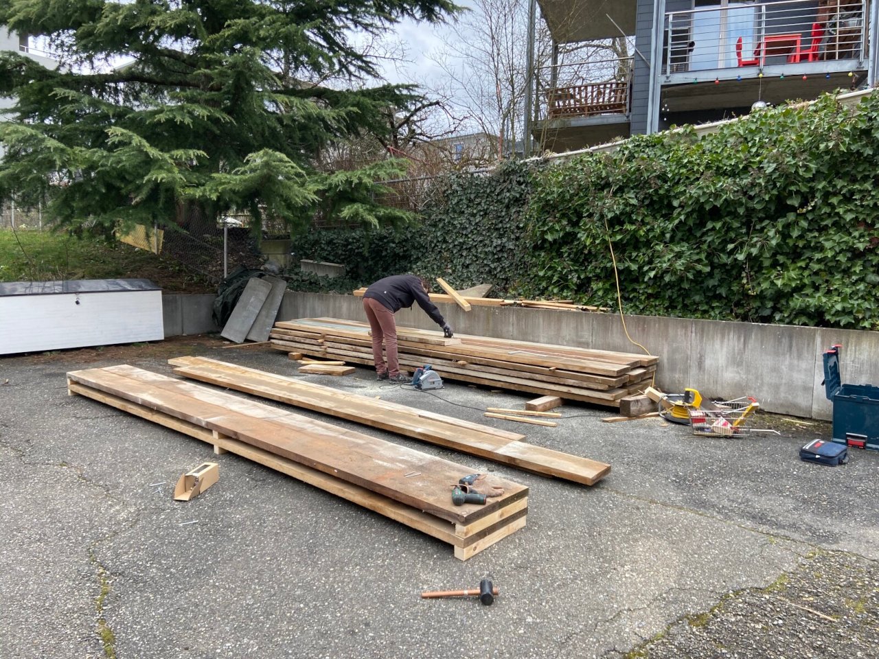 Zusätzlich zu den Pflanzplätzen soll für die Vereinsmitglieder ein Begegnungsplatz mit einfachen Sitzmöglichkeiten geschaffen werden.